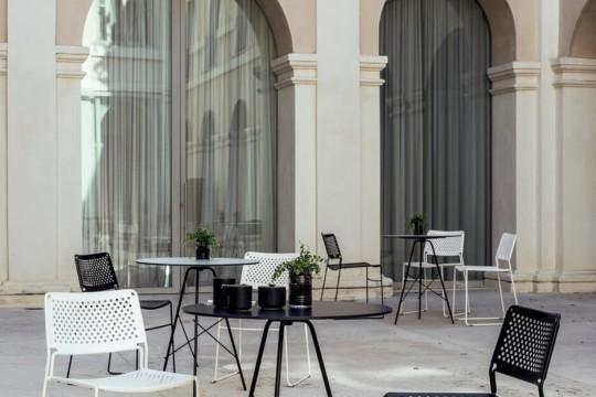 The Slim S M Chair is designed to be the outdoor version for this series. The perforated sheet steel seat and back keep the chair cool and dry, while the chair stackability (8 high) makes it easy to store when winter rolls around.