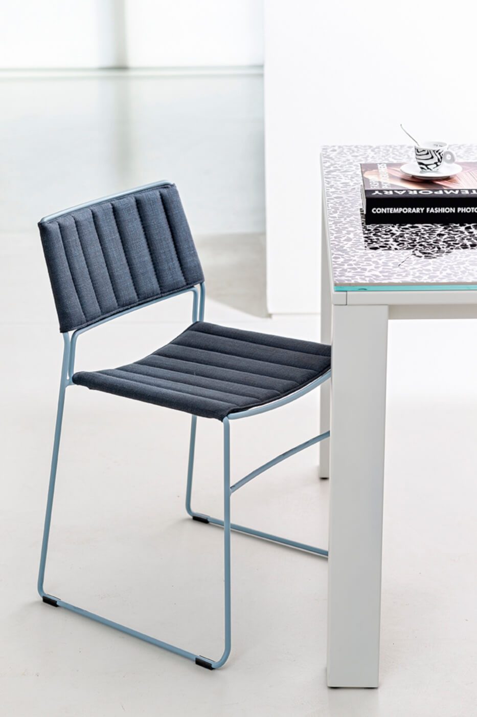 The Slim S M TS Chair is designed to be one of the indoor versions for this series. The fabric or leather seat and back are highly durable in residential and contract applications. The added functionality of the chair’s stackability (8 high) makes it a big plus when additional space is needed.